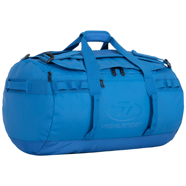 Highlander Storm Kitbag 65 Blue - это прочная и надежная сумка-рюкзак из износоустойчивого материала для сложных задач, транспортировки тяжелой поклажи, экспедиций и многократных поездок в любую погоду, когда требуется сохранить вещи сухими и неповрежденными. Сумка не является на 100% водонепроницаемой, однако пошита из водонепроницаемого материала и имеет конструкцию препятствующую проникновению влаги даже в сильный дождь. Когда необходимо быстро перемещаться пешком, данная модель может трансформироваться в рюкзак, благодаря наличию мягких, анатомических шлеек, прячущихся в специальном кармане. Верхние ручки, обхватывающие сумку-рюкзак по периметру, а также две пары боковых ручек позволяют транспортировать тяжелую поклажу, а также удобней загружать ее в багажные отделения в транспорте. Такая прочная вместительная сумка из водозащищенного материала станет находкой для каждого рыбака или любителя водных видов спорта.