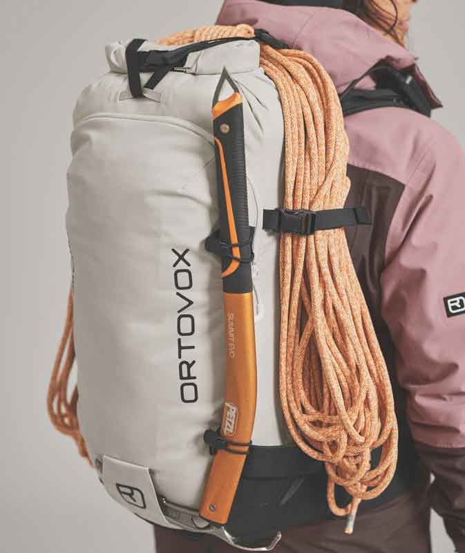 Для оптимальной регулировки во время движения рюкзак можно быстро сжать и сложить в плоскую дополнительную упаковку на спине с помощью интегрированных боковых ремней. Если речь идет о спуске по крутым склонам или коротким пешим переходам, этот фрирайд-рюкзак имеет все необходимые опции для крепления лыж, ледоруба или веревки, не говоря уже о проверенной сетке для шлема, аварийной карте и совместимости с гидратационными системами. Все элементы хорошо расположены снаружи, чтобы не зацепиться даже на пересеченной местности.