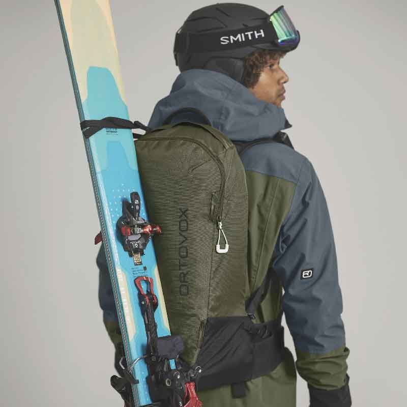 Ortovox Free Rider 22 рюкзак для freeride, очень хорошо сидит на спине – как вторая кожа. Это в основном благодаря плоской эластичной застежке Flex Belt, которая обеспечивает контроль в любой ситуации и надежную поддержку. Мягкие спинные подушки идеально прилегают к спине, не ущемляя движений позвоночника. На внутренней стороне спинки рюкзака можно установить защиту позвоночника на застежке Clasp Spine Protector. Эта защита для позвоночника сертифицирована по мотоциклетным стандартам и может быть приобретена отдельно. Легко помещается в отдельный внутренний карман. Акцент здесь делается как на вашей безопасности, так и на окружающей среде: Этот фрирайд-рюкзак вообще не содержит PFC, а также климатически нейтрален благодаря использованию переработанного полиэстера.