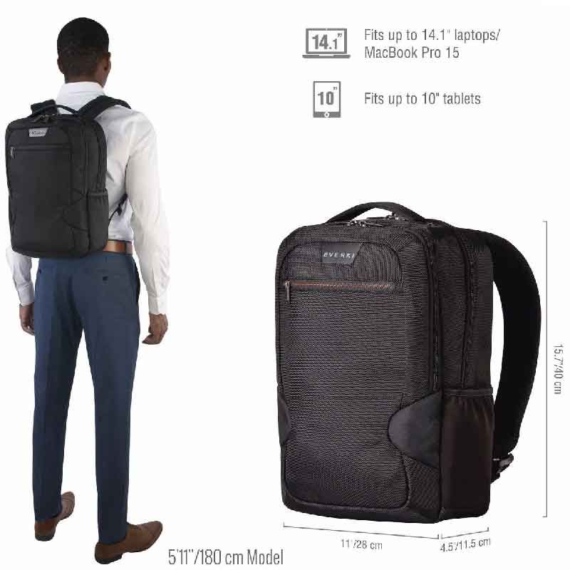 Everki 15" Studio - тонкий и компактный рюкзак для ноутбука до 15 дюймов, изготовлен из переработанных пластиковых бутылок. Имеет полную защиту, благодаря мягкой подкладке с запатентованной защитой углов.
