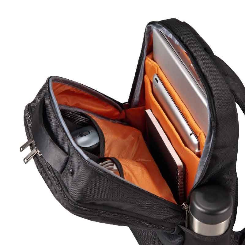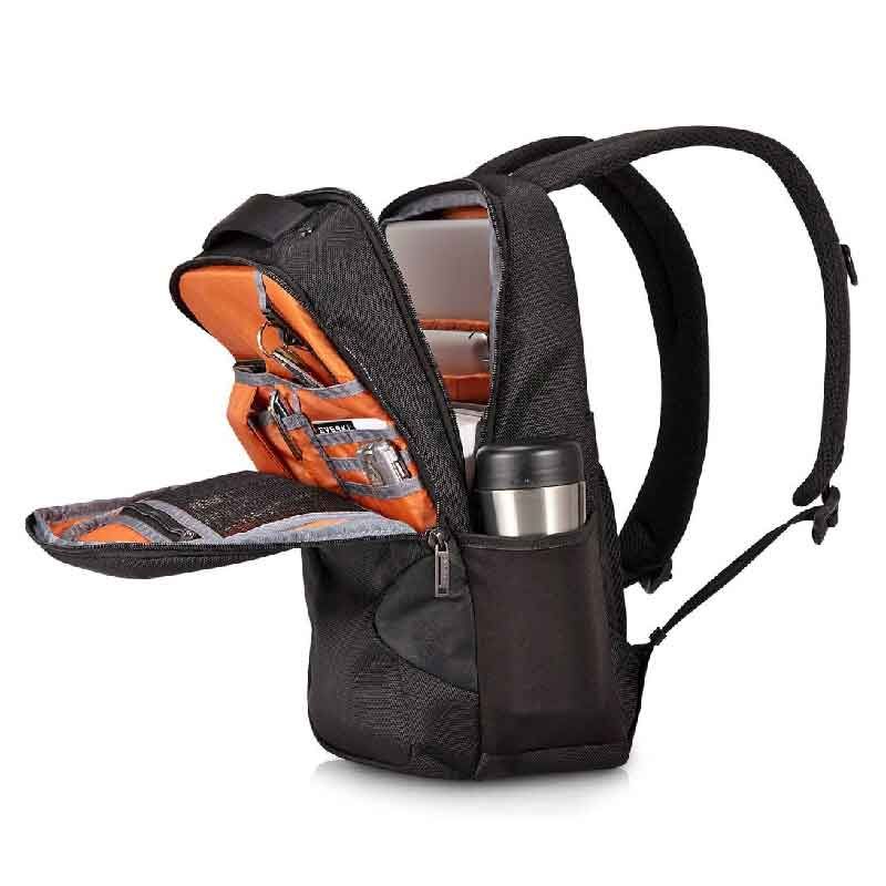 С Everki формы и функции не взаимоисключающие. В дополнение к целому ряду удобных карманов и слотов, обеспечивающих содержание вещей на своих местах, Studio имеет высококонтрастную оранжевую подкладку, которая вписывается в общую тему сумки и облегчает поиск вещей при любых обстоятельствах.