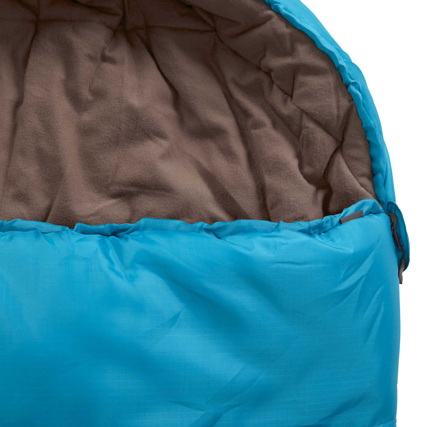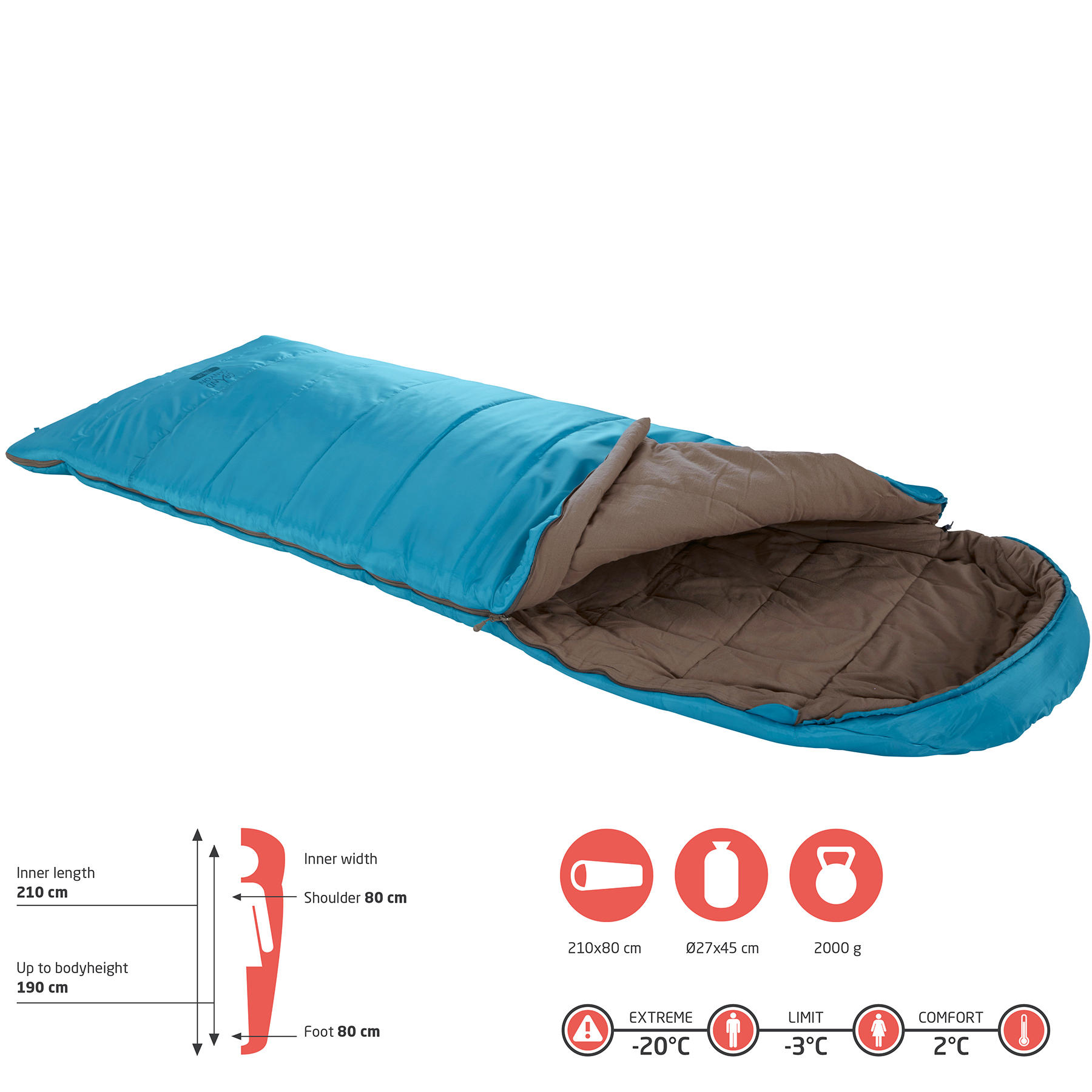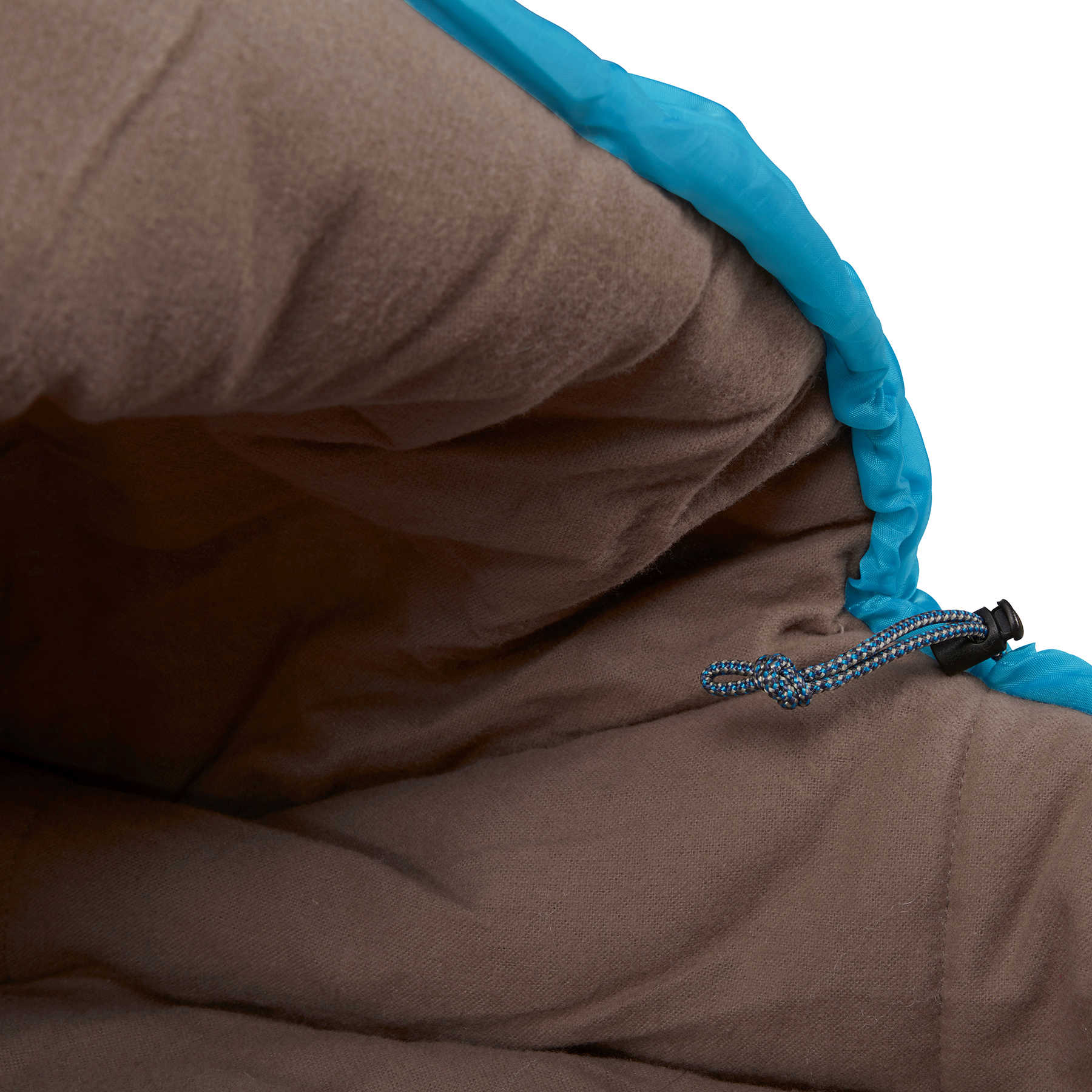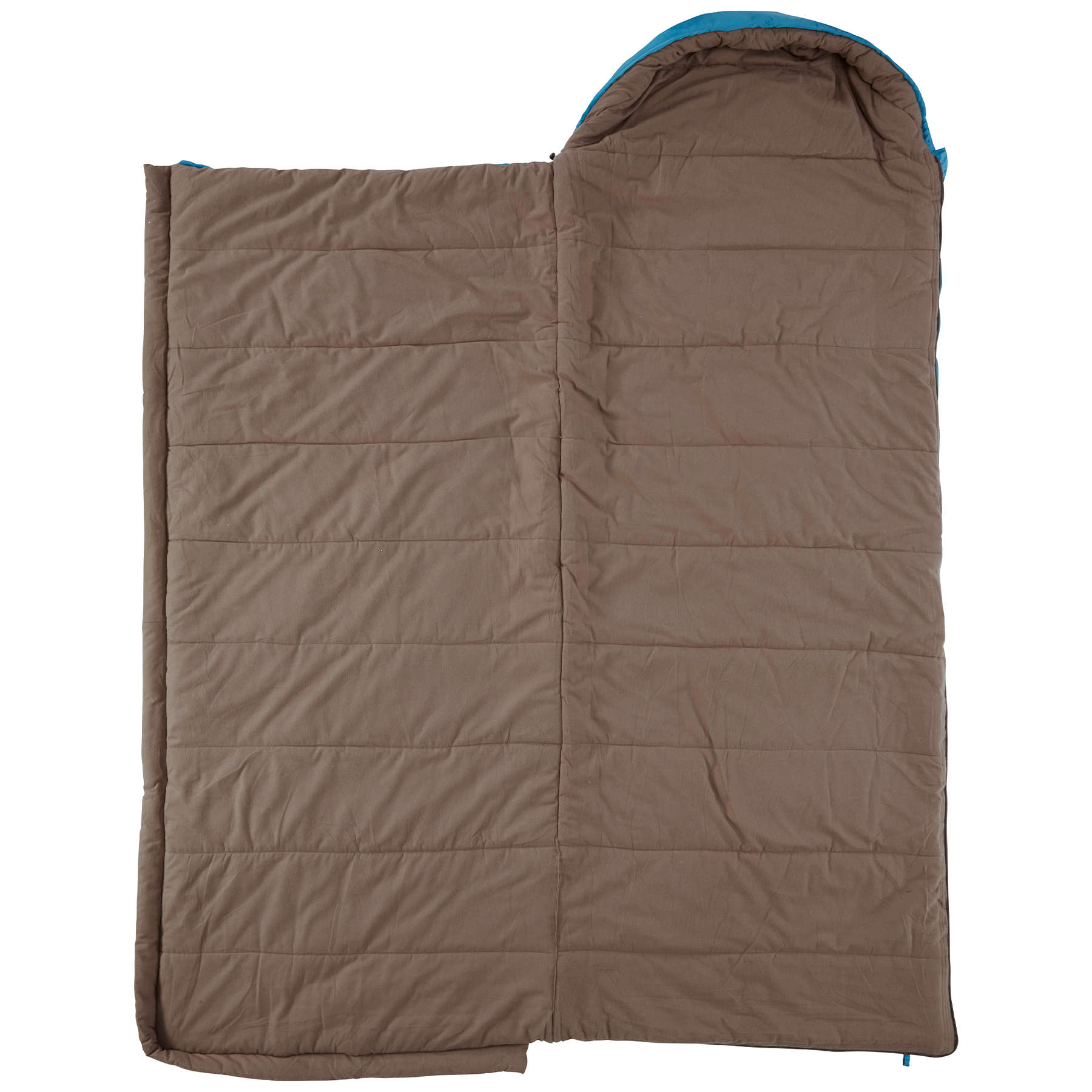 Спальный мешок имеет молнию по всему периметру, благодаря чему в расстегнутом виде превращается в двуспальное одеяло шириной 160 см;