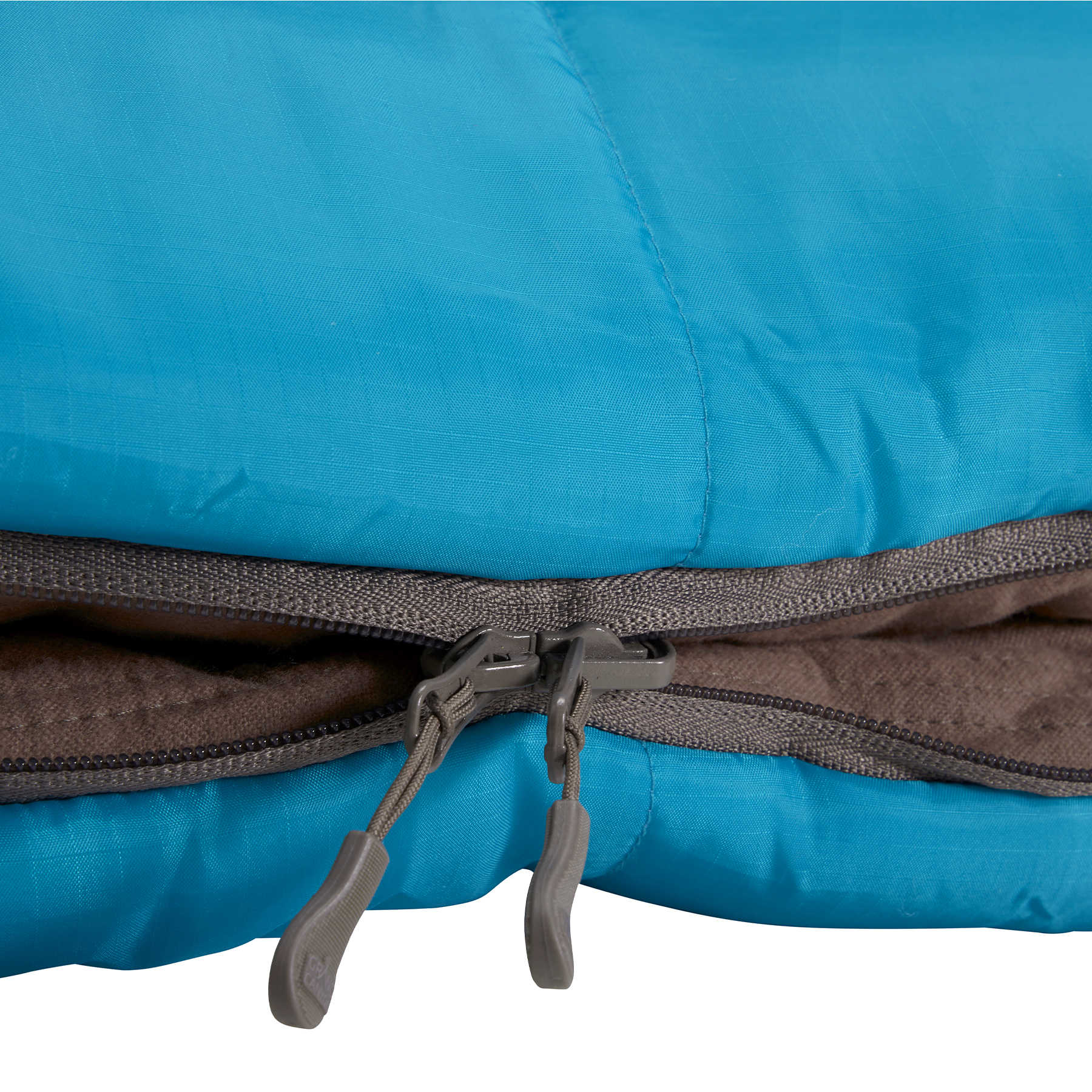 Молния оснащена двумя замками, верхний из которых – двухсторонний. Таким образом, молния удобно расстегивается и застегивается как снаружи, так и изнутри, позволяя также открыть нижнюю часть спального мешка для проветривания;