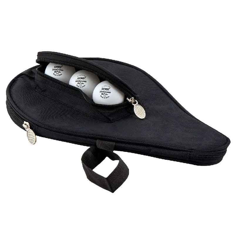 Gewo Round Cover Master (Black/Blue) - чохол для ракетки, м'який чохол з міцної тканини забезпечує вашій ракетці всебічний захист. Спортивний, елегантний дизайн із приємним відчуттям дозволяє транспортувати вашу ракетку стильно та комфортно. Підходить для однієї ракетки для настільного тенісу і має відділення для 3-х м'ячів.