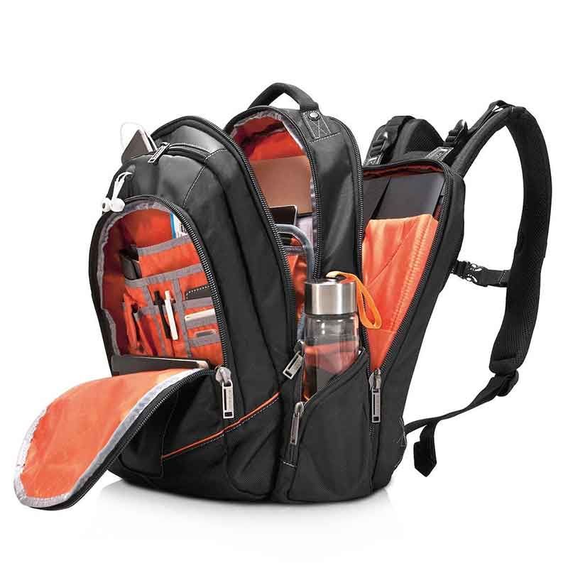 Everki 16" Flight - рюкзак на 28,5 літрів для тих, хто багато подорожує і веде активний спосіб життя. Рюкзак легко вміщує ноутбук до 16" у своєму ультрам'якому повстяному відділенні, що може відкриватися на 180º для легкого доступу. Це також дасть змогу вам проходити через пункти перевірки в аеропортах і не виймати ноутбук! Навіть із повним завантаженням, Flight комфортно носити, завдяки каналам вентиляції спини та 5-точковою пасовою системою балансу з повністю регульованим нагрудним ременем.
