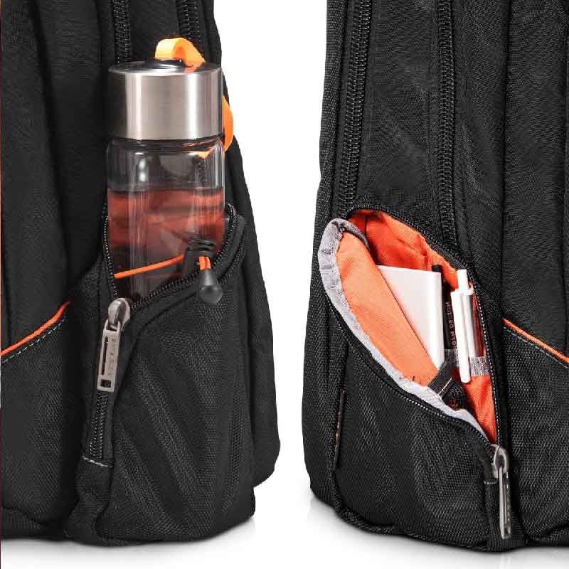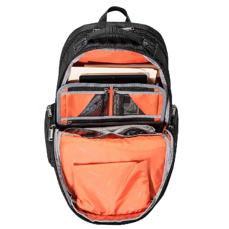 Головне відділення обладнане великими кишенями на блискавках, роздільником для окремого зберігання ваших документів або периферійних пристроїв і м'якою, тонкою, повстяною кишенею, що ідеально підходить для зберігання iPad, Kindle або інших подібних планшетів. Переднє відділення має безліч слотів для зберігання ваших візиток, двох ручок, і будь-яких інших важливих документів або електронних компонентів. Flight має також верхню кишеню на блискавці, з м'якою оббивкою без ворсу для вашого музичного плеєра або телефона. Ця кишеня має спеціальний отвір для навушників, що запобігає потраплянню пилу або дощу. Є також дві зручних бічних кишені, що надають ще більше місця для зберігання предметів, як-от зарядний пристрій телефона або компактна цифрова камера. Одна із бічних кишень має місце для пляшки з водою, обладнане регульованою петлею.