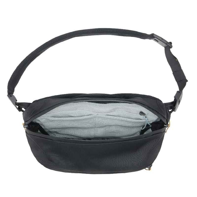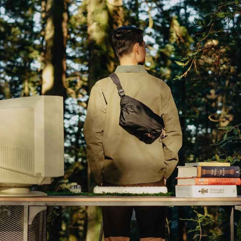 Зовнішня тканина Terra Shell™ 210D ripstop — надлегка, стійка до стирання, водостійка, на 100% перероблена, сертифікована Bluesign. Має внутрішнє PU-покриття, обробку без PFAS і водонепроникну блискавку UltraZip™ №5. Усередині — м’яка кишеня для телефону з магнітним клапаном, зовнішня кишеня на блискавці з тримачем для ключів і 3 внутрішні сітчасті кишені для дрібниць. М’який плечовий ремінь з швидким регулюванням забезпечує комфортне носіння через плече, легко знімається, перевертається або кріпиться до інших речей завдяки фурнітурі з армованого скловолокном нейлону. Також його можна носити на талії.