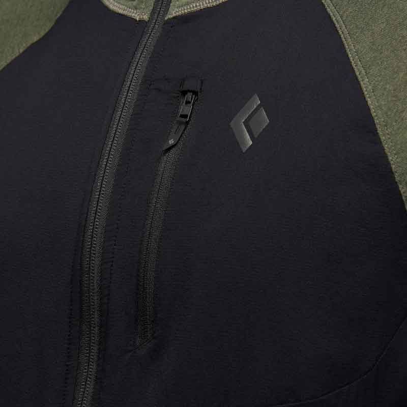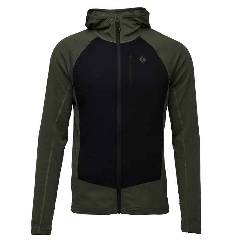 Black Diamond Men's Coefficient LT Hybrid Hoody - чоловіча фліска, ідеальний вибір для тих, хто шукає універсальну та легку кофту для інтенсивного активного відпочинку. Незалежно від того, чи ви займаєтесь швидкісним пішим туризмом чи лижним туризмом вона з легкою ізоляцією та флісом пропонує оптимальний захист від холоду, забезпечуючи при цьому чудову повітропроникність. Інноваційна технологія Grid-Back-Fleece покращує співвідношення тепла та ваги та робить її незамінним супутником у мінливих погодних умовах. Завдяки бризконепроникному ущільнювачу та капюшону, який можна носити під шоломом, ви добре захищені від вітру та вологи.